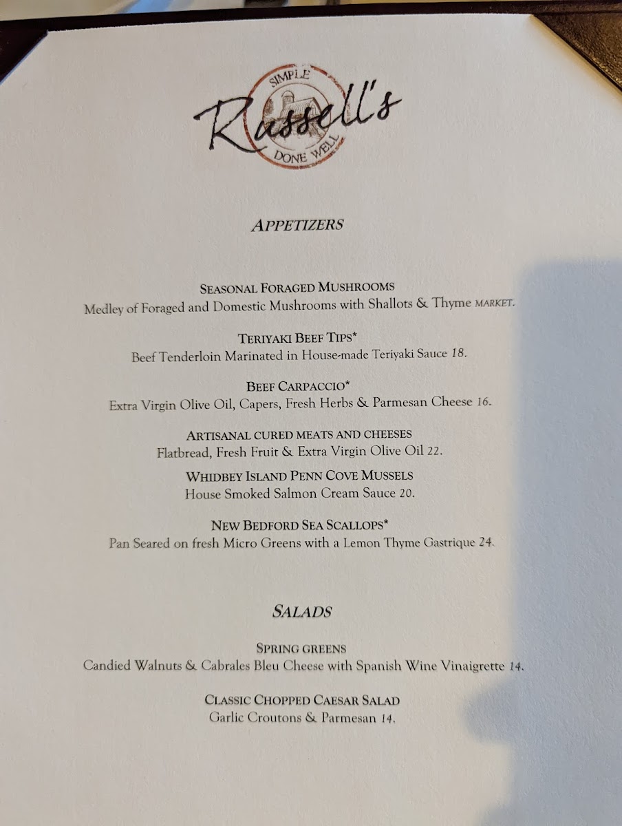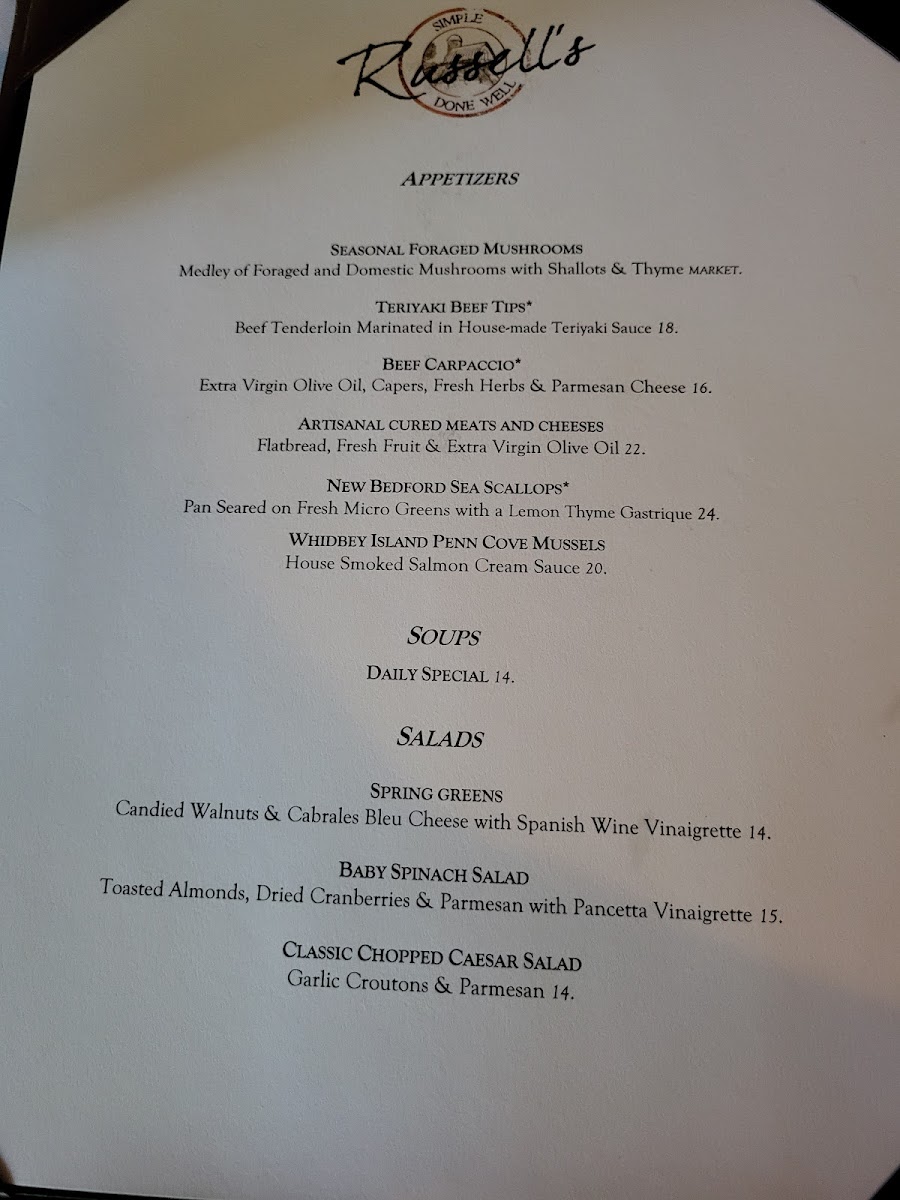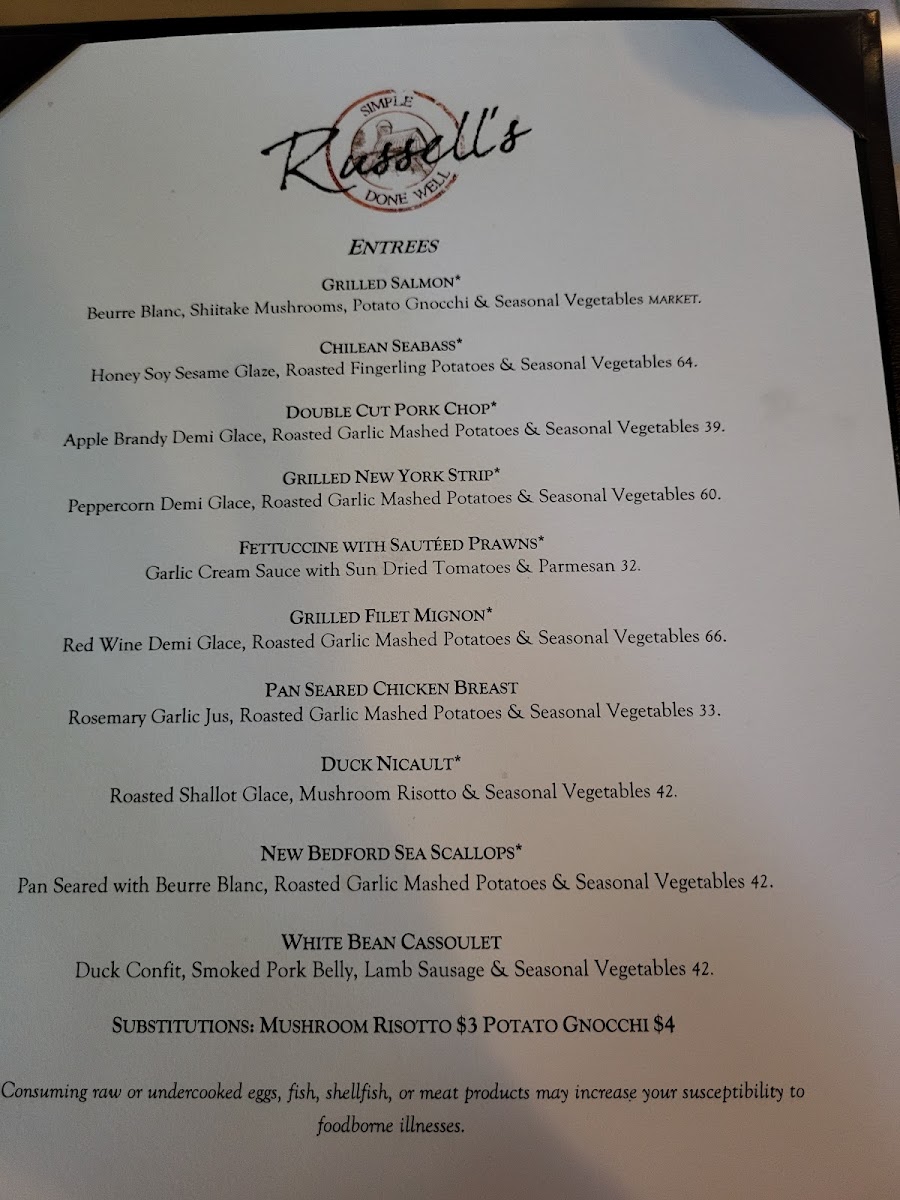 Russell's Restaurant & Loft Menu